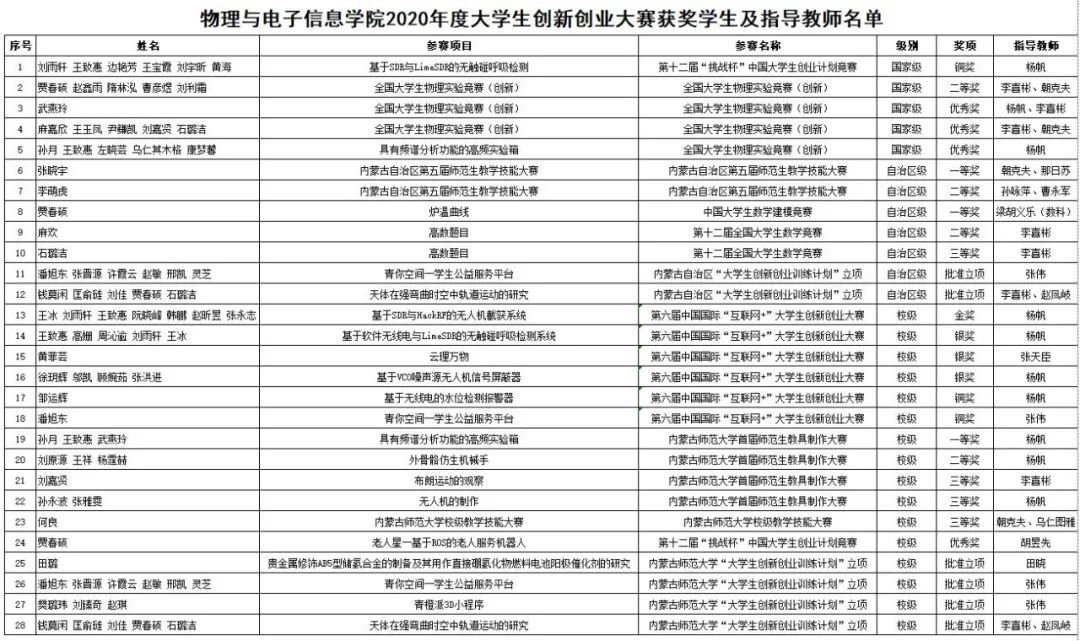 第三项,公司领导为获得2020年度创新创业先进个人以及创新创业优秀指导教师颁奖。公司2017级物理蒙班何良、2017级物理汉班张晓宇、2017级工程班潘旭东、2018级物理汉班钱莫闲、2018级材料班田璐、2019级物理汉1班樊璐玮等23名同学获得公司2020年度创新创业先进个人奖。公司教师曹永军、张伟、那日苏、赵凤岐、田晓、孙咏萍、乌仁图雅、朝克夫、张天臣、杨帆、李喜彬等获2020年度创新创业优秀指导教师奖。