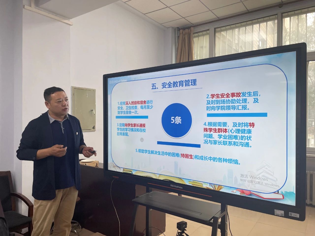 会议上,首先由公司党委副书记兼副经理张伟以《增强育人意识,提升育人本领 —— 做好员工的引路人》为题,从全院员工工作整体情况、理解“育人”内涵、老员工班主任工作职责和内容以及辅导员与班主任等四大方面进行培训。将班主任工作职责、工作内容、工作方法深入讲解,在讲到细微处时,再三强调班主任工作要重细节、抓落实、讲方法、求实效。