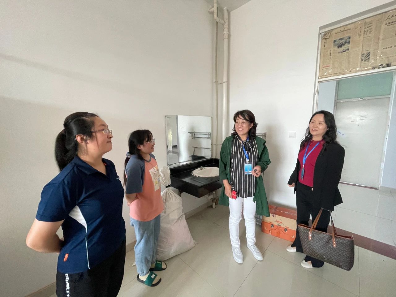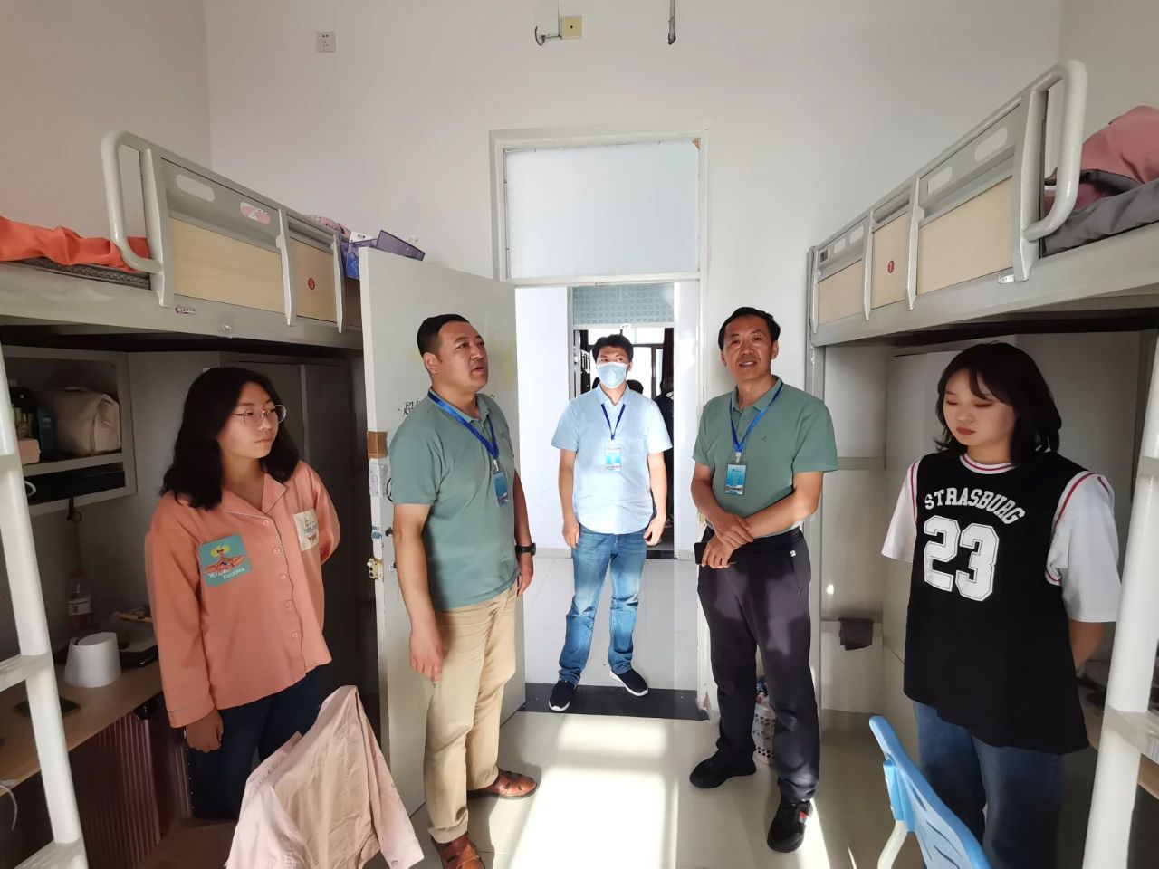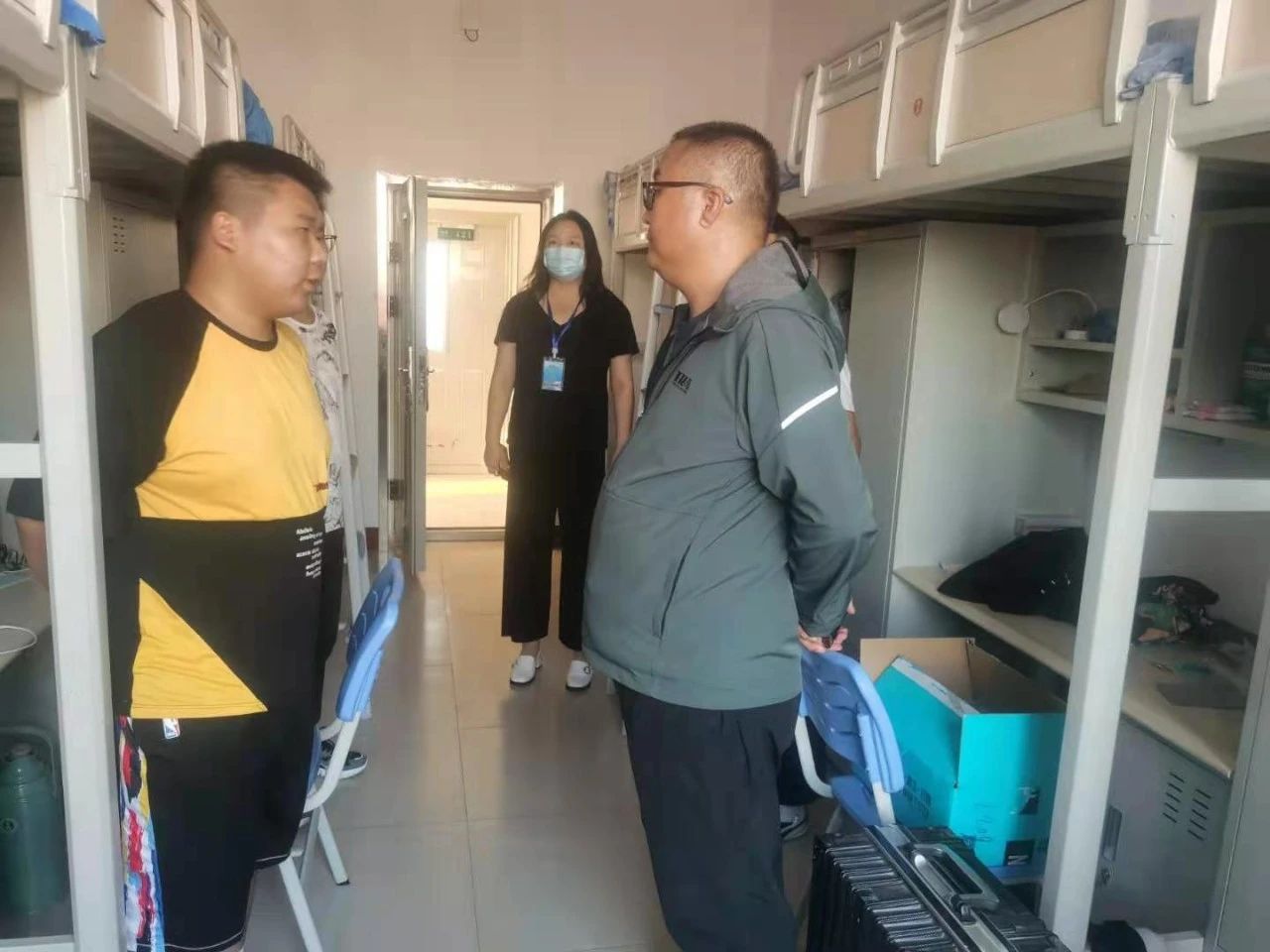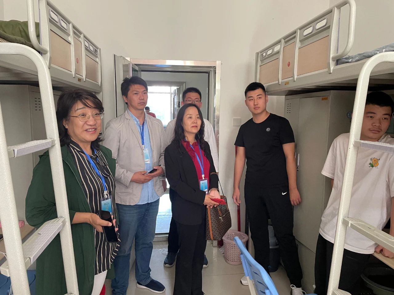 在宿舍里,领导老师们询了问同学们入住情况,解答了一些同学们提出的问题,叮嘱同学们要尽快转换角色、融入大学集体、适应老员工活,做好疫情常态化的防控工作,对未来四年的老员工活乃至人生都有所规划,勉励同学们认真学习,发奋图强。