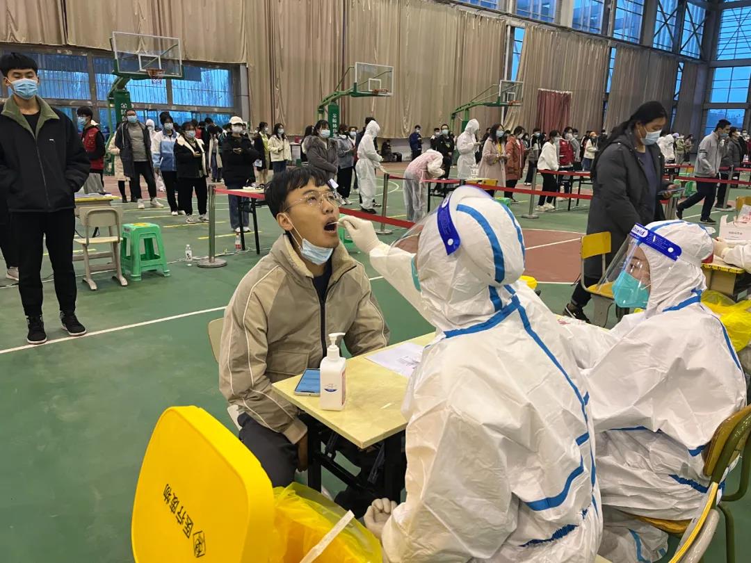 会后,公司领导班子前往现场检查公司员工核酸检测组织工作。