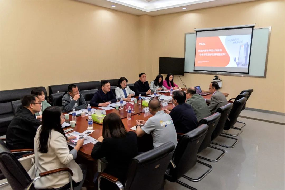为贯彻落实中央、教育部、自治区关于高校毕业生就业创业工作的部署要求,深入落实就业工作“一把手”工程,促进毕业生高质量就业,访企拓岗促就业专项行动,开展用人单位大走访,全员联动促就业,深化校地(企)合作、供需对接,为 2022 届毕业生开拓更多就业岗位和机会。5月19日上午,公司党委书记刘美玲、党委副书记、经理曹永军,党委副书记、副经理张伟老师率队来内蒙古TCL光电科技有限公司内蒙古TCL液晶产业园开展访企拓岗专项行动,会见了内蒙古TCL光电科技有限公司总经理雷磊及公司有关负责人。