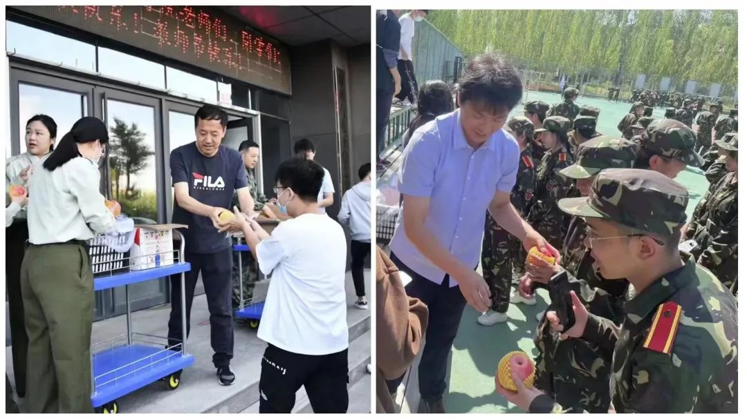 9月10日上午,公司经理曹永军、党委副书记兼副经理张伟、学就办副主任王乐、团总支副书记宝力尔、辅导员吴亚楠老师与2022级新生各班班主任一行带着中秋的祝福来到操场,为公司2022级新生送来了香浓的月饼和甘甜的苹果。