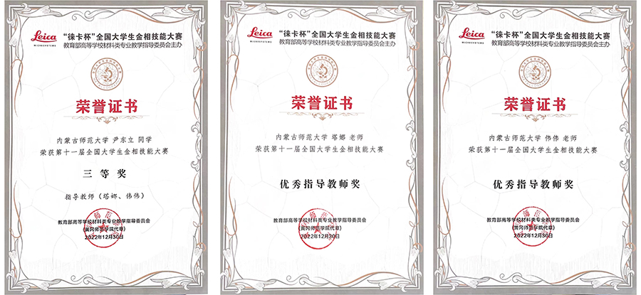 2022年12月,由教育部高等公司材料类专业教学指导委员会主办的第十一届全国老员工金相技能大赛圆满落下帷幕。经过激烈角逐,williamhill威廉希尔2019级材料物理专业尹东立同学荣获全国三等奖,塔娜、伟伟老师荣获“优秀指导教师”奖。本次比赛也是公司师生第二次闯入该项赛事在全国决赛中获奖。
