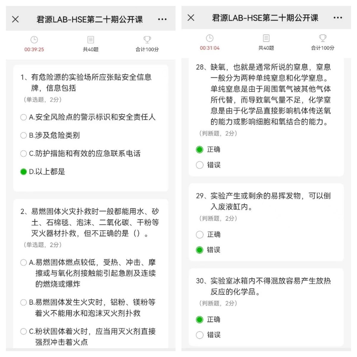 之后,欧志强老师结合重点实验室的情况,强调了加强实验室安全意识的重要性和必要性,要求同学们在科研实验过程中务必严格遵守各项安全制度,同时也要加强学习,深刻汲取近年来全国个别高校实验室安全责任事故的教训。最后组织同学们进行了安全知识测试并签署实验室安全责任书。