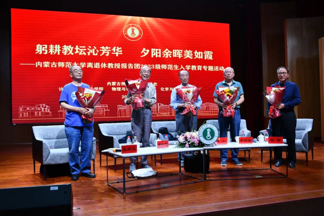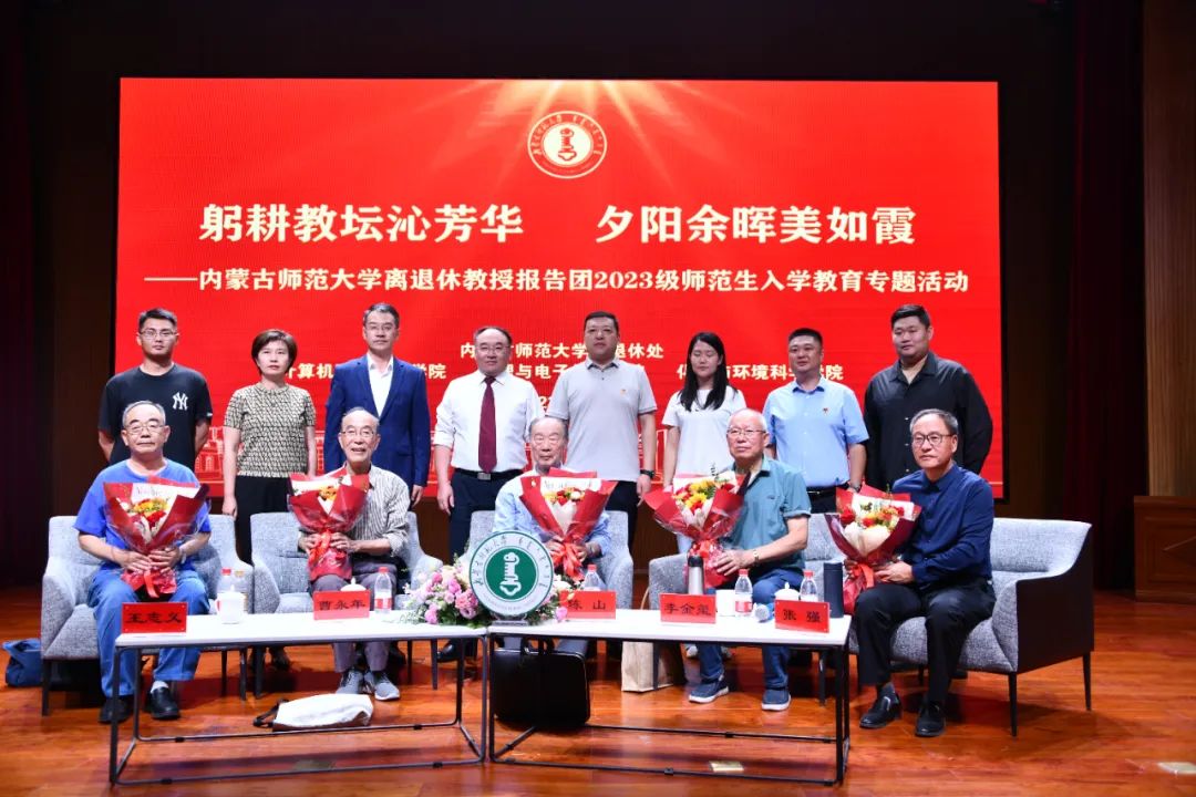 9月20日晚,williamhill官网离退休处主办,计算机科学技术公司、英国威廉希尔公司、化学与环境科学公司承办的躬耕教坛沁芳华,夕阳余辉美如霞——williamhill官网离退休教授报告团2023级师范生入学教育专题活动在盛乐校区图书馆二楼报告厅举行。