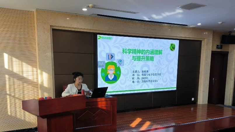 孙咏萍教授详细地向参训学员们解释了科学精神的内涵,深入探讨了科学思维、探究精神以及批判性思维等方面的要点。同时,结合自身多年的研究经验,为参训学员们提供了有关如何在小学科学教学中有效促进员工科学精神发展的提升策略。