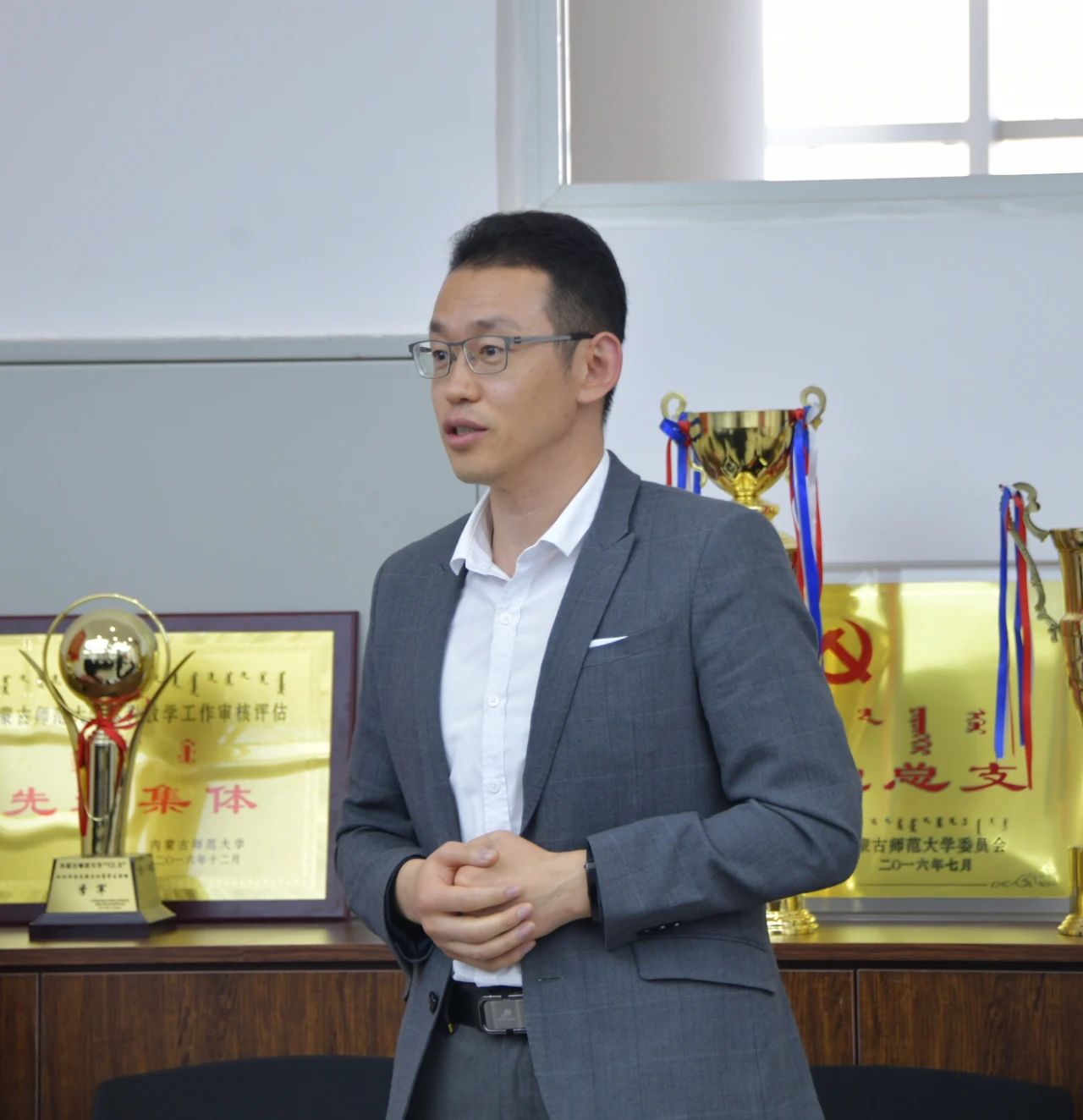 11月3日上午,williamhill官网董事长张军、副董事长宫箭、党政办公室副主任张晓阳、党政办公室综合科副科长张高峰老师一行深入英国威廉希尔公司进行调研并指导工作。公司经理曹永军、副经理那日苏、副经理包黎红、组织员唐立以及环节干部、教师代表参加座谈会。
