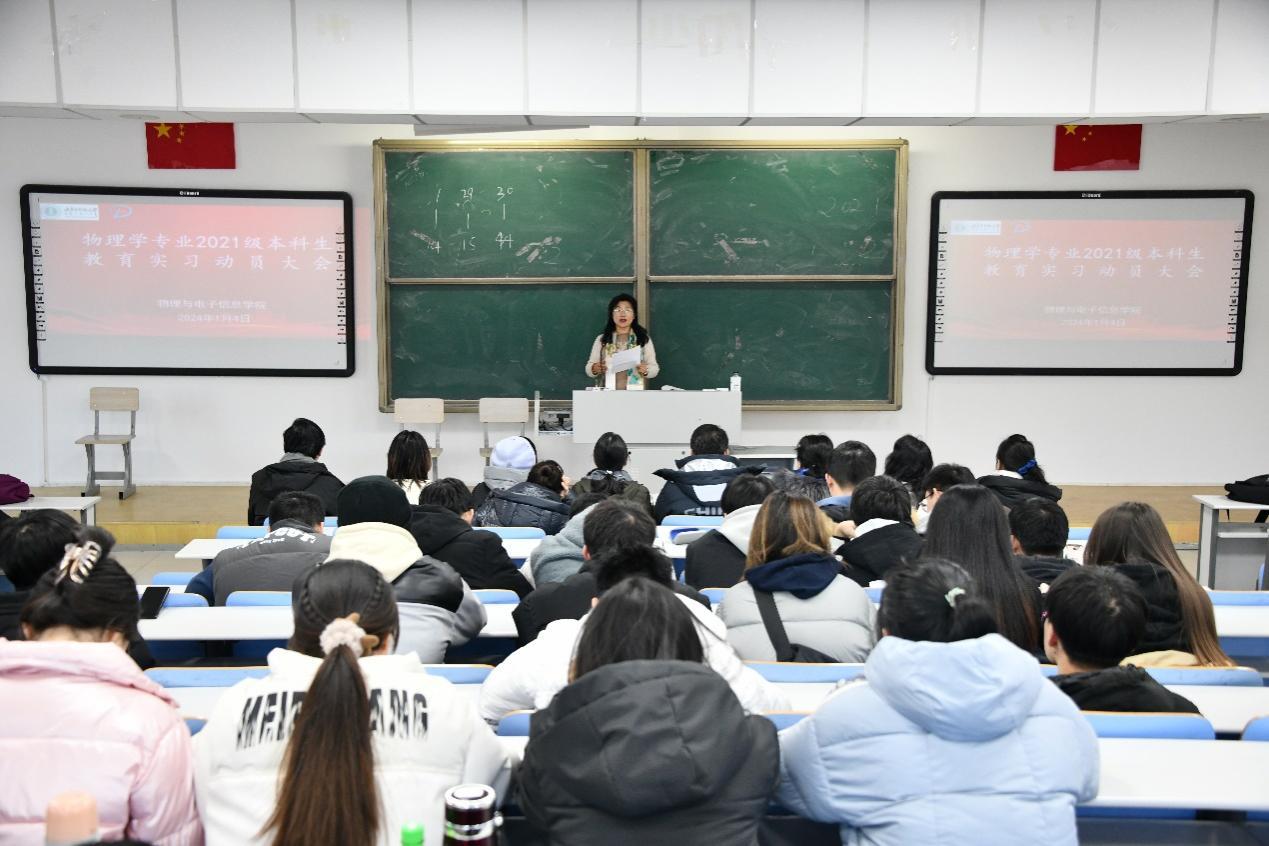 1月4日下午,公司在行知楼118召开物理学专业2021级旗下产业实习动员大会。公司副经理包黎红、负责2024年实习的校内指导老师出席会议,2021级物理学专业全部在校生参加会议,会议由物理系副主任孙咏萍主持。