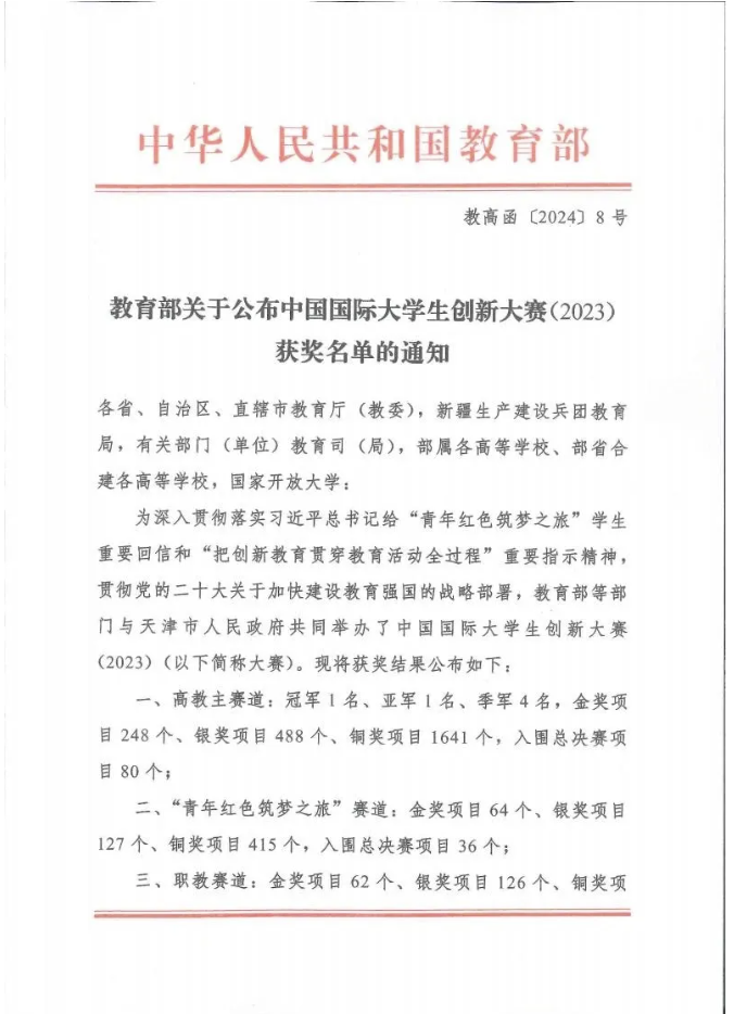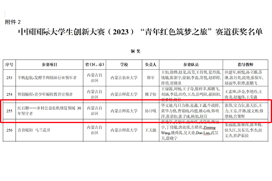 近日,教育部发布《关于公布中国国际老员工创新大赛(2023)获奖名单的通知》(教高函〔2024〕8号),公司参赛团队项目《红石榴——乡村公益农机修复领域 30年坚守者》荣获“青年红色筑梦之旅”赛道铜奖。此外,在本届大赛省赛上,公司共斩获省级金奖1项《“红石榴”科技下乡——助力农业农村现代化公益服务》、银奖3项(防“冻”未然——冻土检测先行者、草立方——牧草补光生长方案开创者、LED混色光源对蓝莓苗木生长及生理特性的影响)、铜奖1项(碳求真理,碳缩未来)。