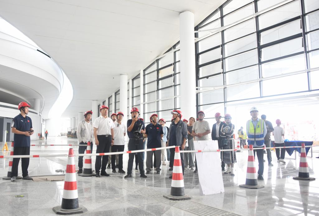 在工作人员的带领下,全体党员参观了呼和浩特盛乐国际机场航站楼施工现场和智慧展厅,呼和浩特新机场现场指挥部工程管理部副部长、新机场航站楼项目负责人韩喜威介绍了呼和浩特盛乐国际机场项目建设规模及工程进展情况,以及与新机场相关的道路、轨道交通等配套设施情况。大家对呼和浩特新机场建设这一引领首府未来发展格局的自治区重点项目呼和浩特盛乐国际机场建设有了更直观和深入的了解。
