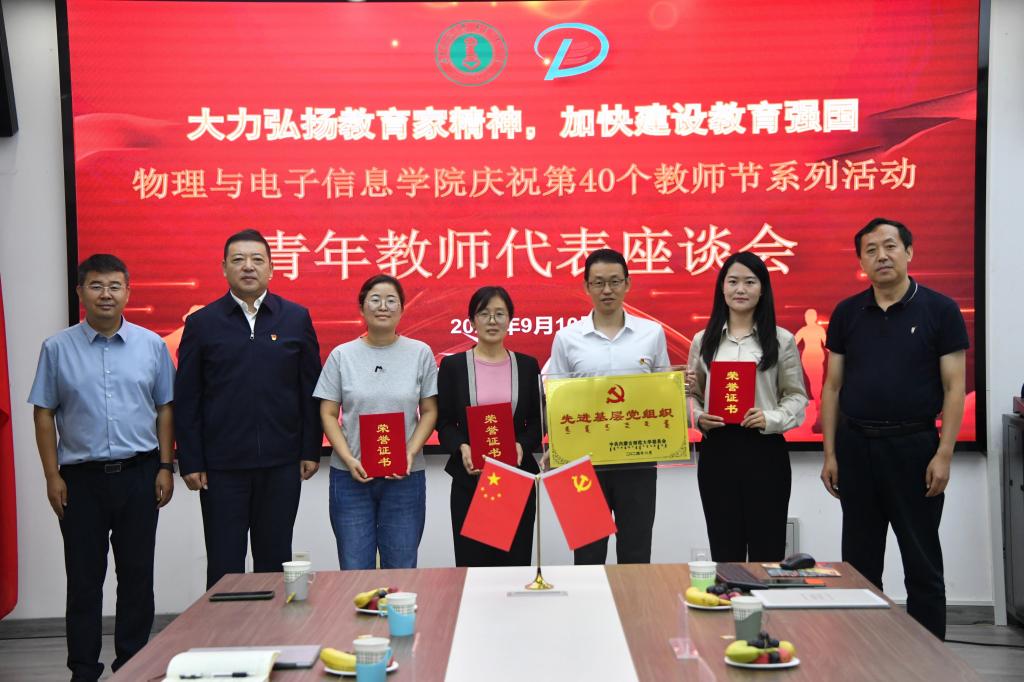 会议伊始,公司领导班子向青年教师致以节日的祝福和诚挚的问候,并为2024年获得公司“两优一先”表彰的教师张丽娜、杨艳春、宝力尔颁发奖状,为先进基层党组织教工一支部颁发奖牌。