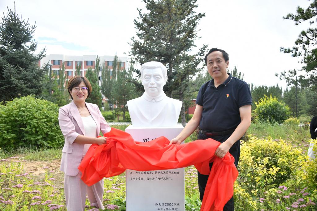 仪式最后,周丹丹副处长与曹永军经理共同为邓稼先雕像揭幕。当雕像正式呈现在大家面前时,现场气氛庄严肃穆。邓稼先雕像高大挺拔,象征着他为国家的无私奉献,也激励着在场的每一位师生铭记历史、继续前行。