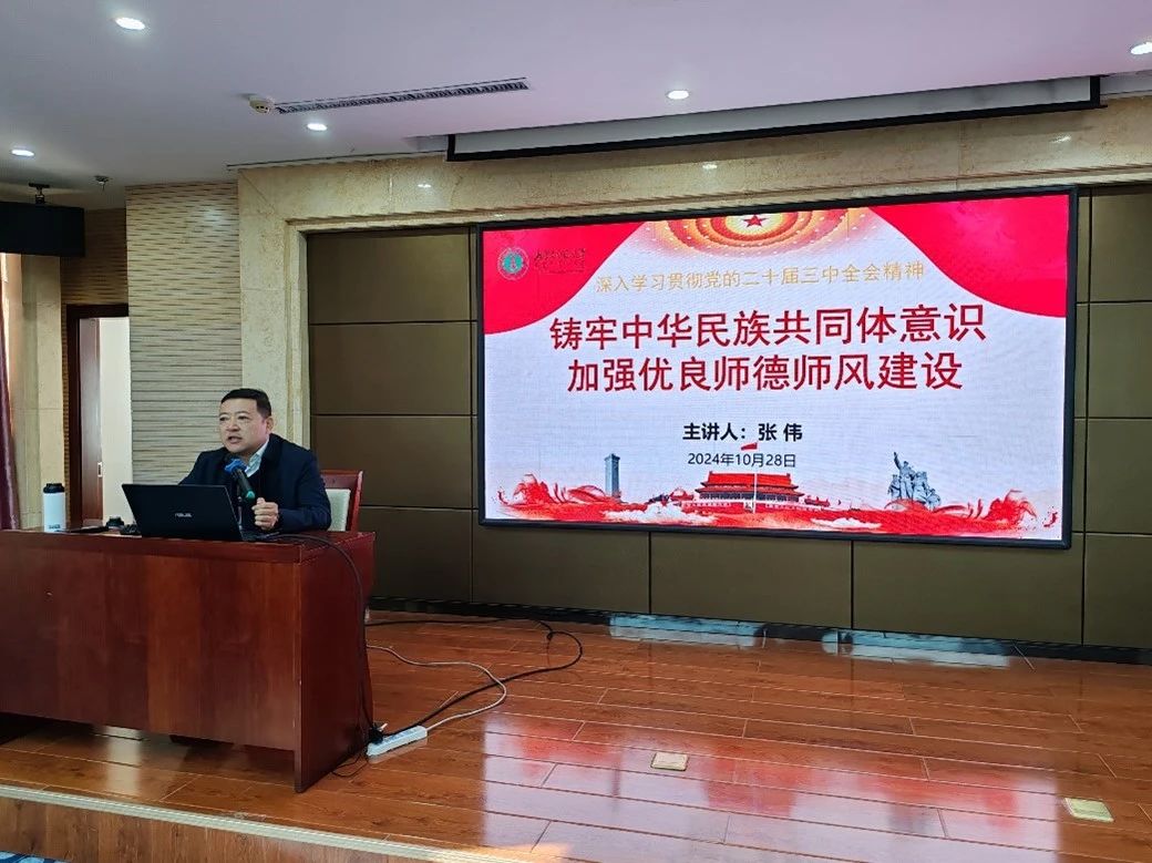公司党委书记张伟,以“铸牢中华民族共同体意识,加强优良师德师风建设”为题,围绕“统一思想认识,夯实铸牢中华民族共同体意识的思想基础;追寻总书记足迹,汇聚铸牢中华民族共同体磅礴伟力;加强师德师风建设,提升教师职业素养”三方面进行了深度讲解,引导学员们牢牢抓住筑牢中华民族共同体意识这条主线,深化民族团结进步教育。