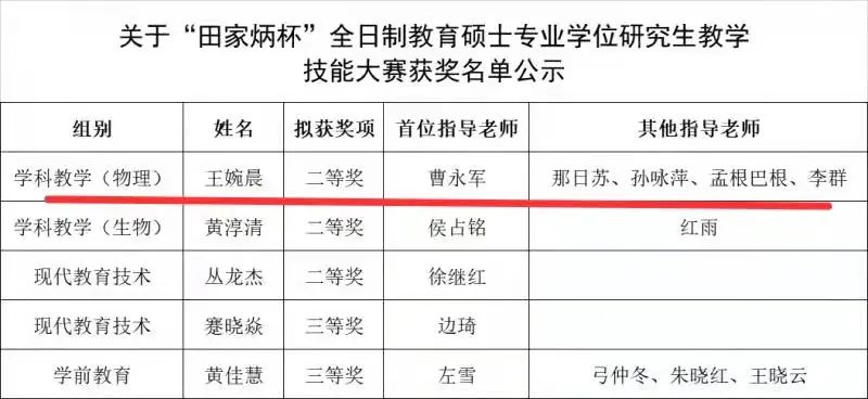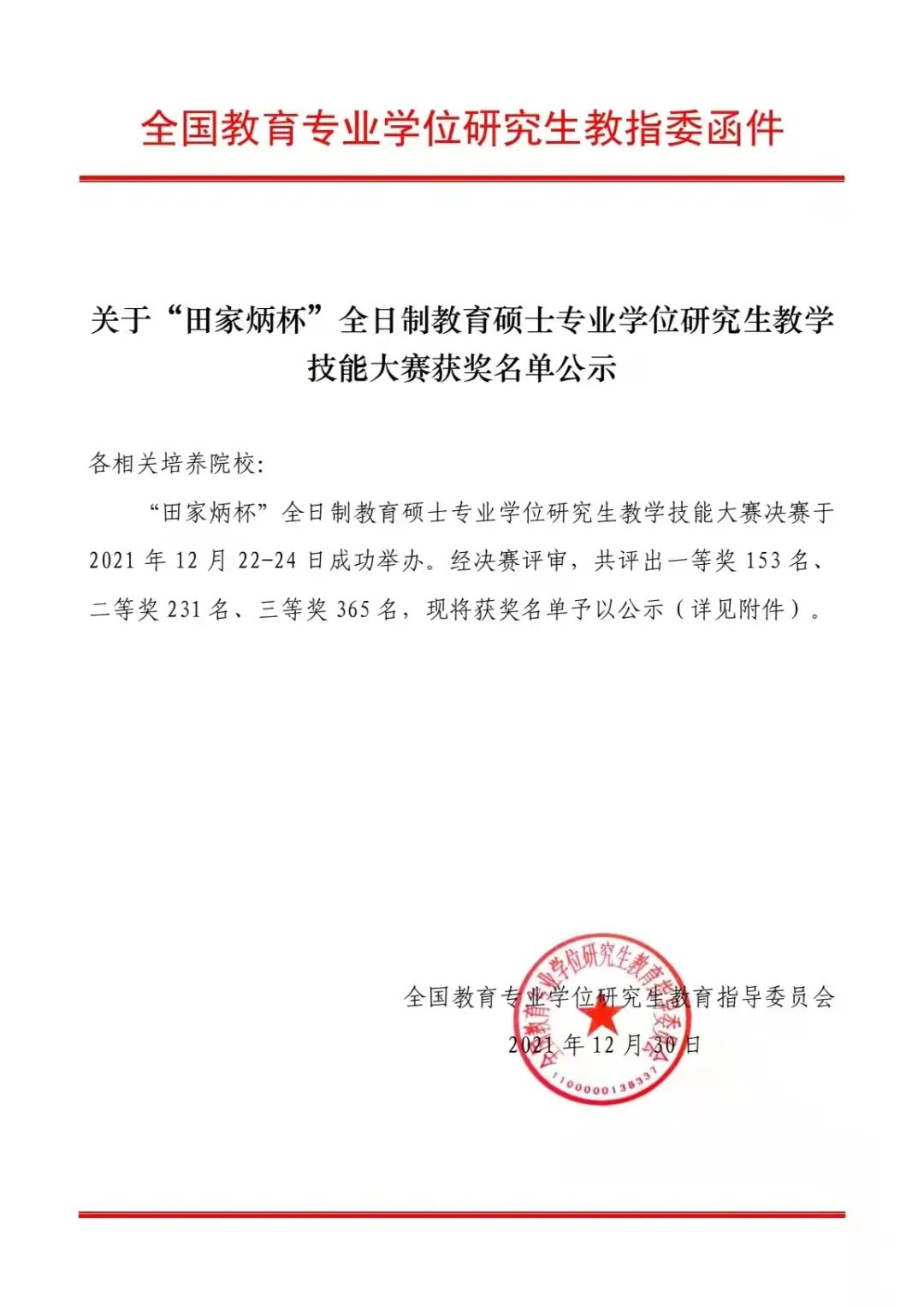 “田家炳杯”全日制教育硕士专业学位研究生教学技能大赛决赛于2021年12月22-24日成功举办,经决赛评审,公司研究生王婉晨获得二等奖。