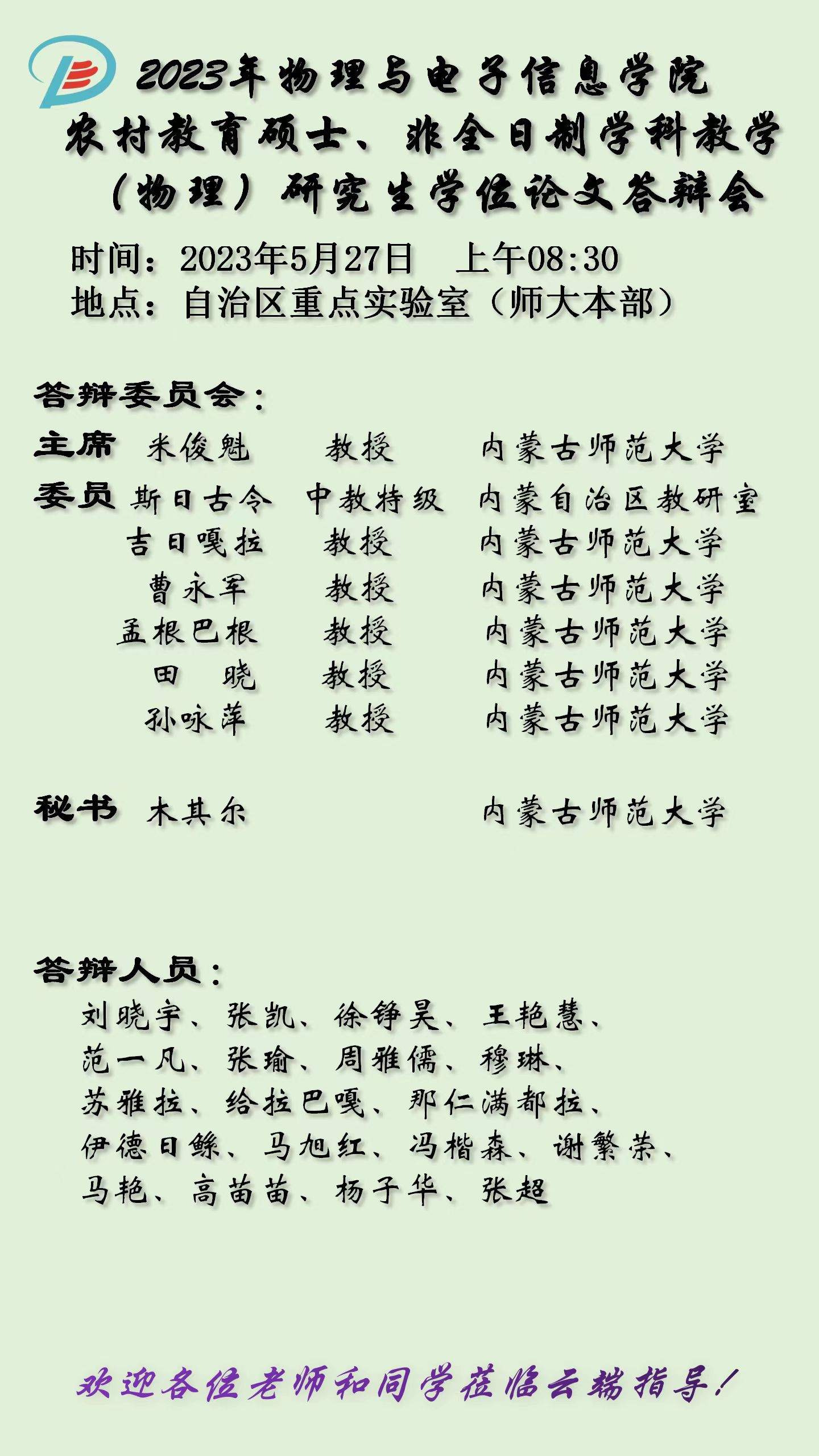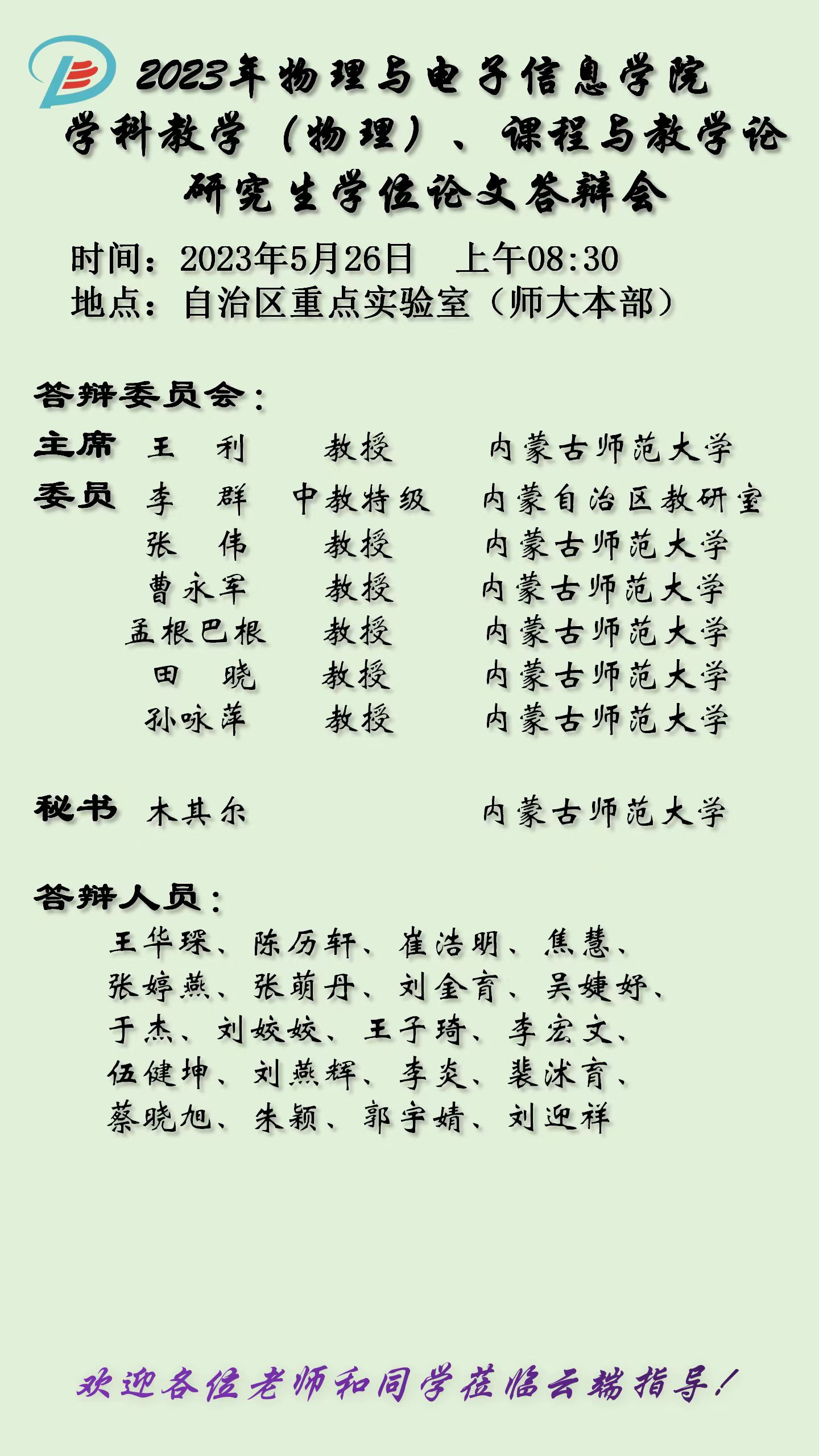 英国威廉希尔公司2023届硕士研究生学位论文答辩安排