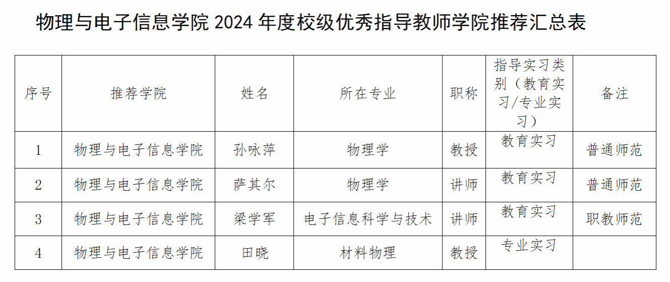 根据内师教发〔2025〕15号文件要求,英国威廉希尔公司2024年度校级优秀实习指导教师、实习生公司评选结果公示如下: