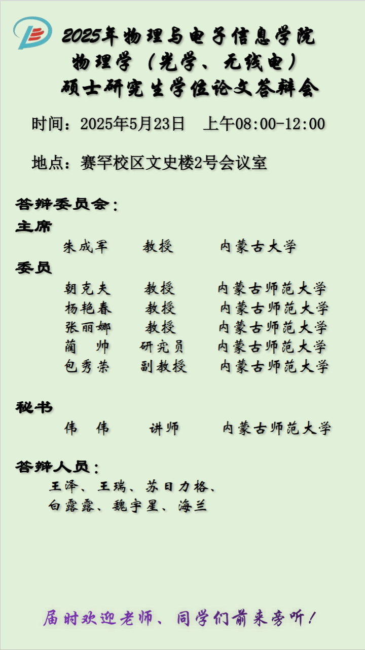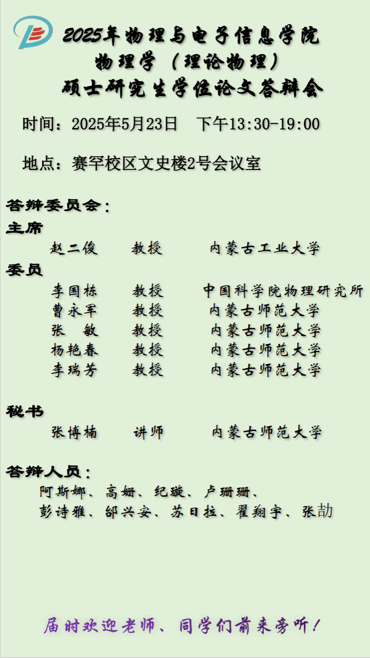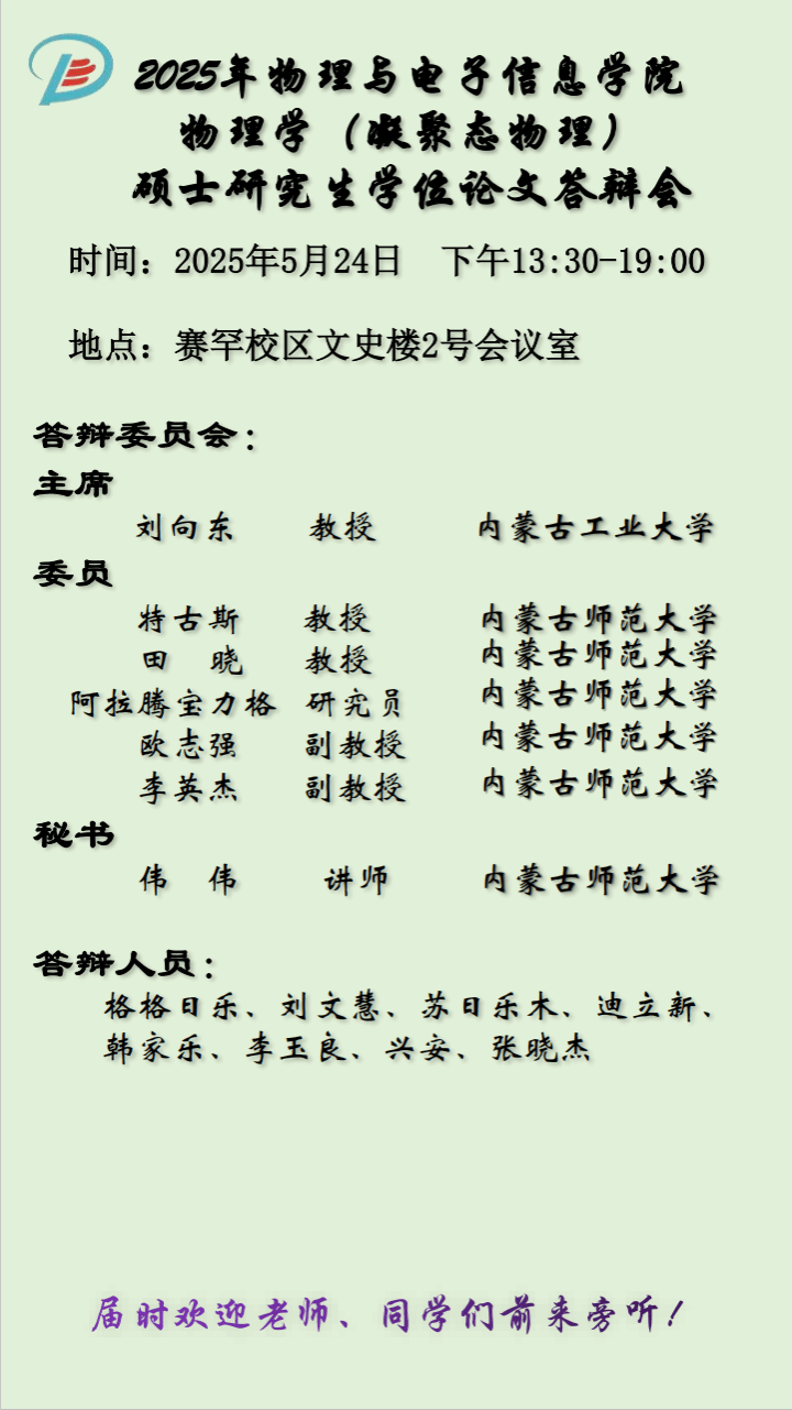 2025年英国威廉希尔公司物理学硕士研究生学位论文答辩会