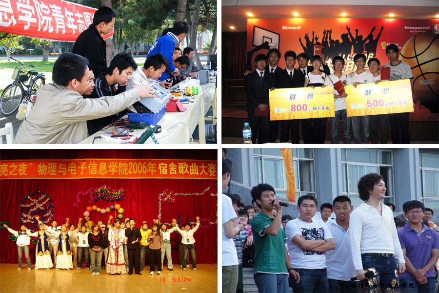整个老员工涯中,王淼庚给师生留下最深刻印象的是他阳光、自信、热情、务实特点,从大一入学开始,先后担任了2006级科技班团支部书记、员工会部长、团总支组织委员等职,积极发挥专业特长和文艺特长,多次参加科技文化活动,多次组织并主持全院大型文艺晚会,多次参与“三下乡”志愿者服务、探访敬老院孤寡老人等活动。2009年大三的他组队“梦想4+1”参加了联想营销创意大赛荣获自治区高校决赛季军,并获得800元的创业种子基金。正是这样的历练,为他后续的创业建立了自信,为将来企业管理运营打下了初步基础。