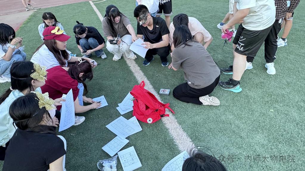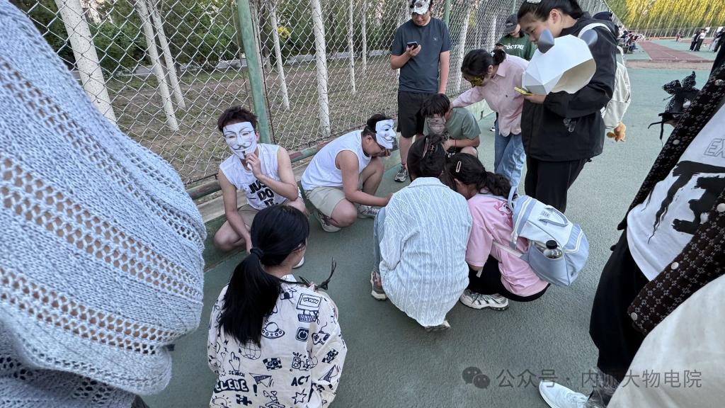 随着夜幕的降临,探险者们佩戴着精美的舞会面具,在南操场的西南角和东南角签到并领取面具,准备踏上一段神秘的科学探索之旅。