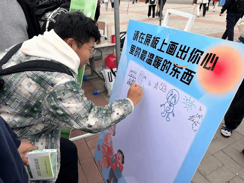 活动现场,同学们积极投入,展现出极高的参与热情。活动分为线上和线下两部分 :线上先进行mbti测试正视自己;线下开展了精彩的户外心理健康宣传线下活动如“你画我猜”“用三个词描述自己”……
