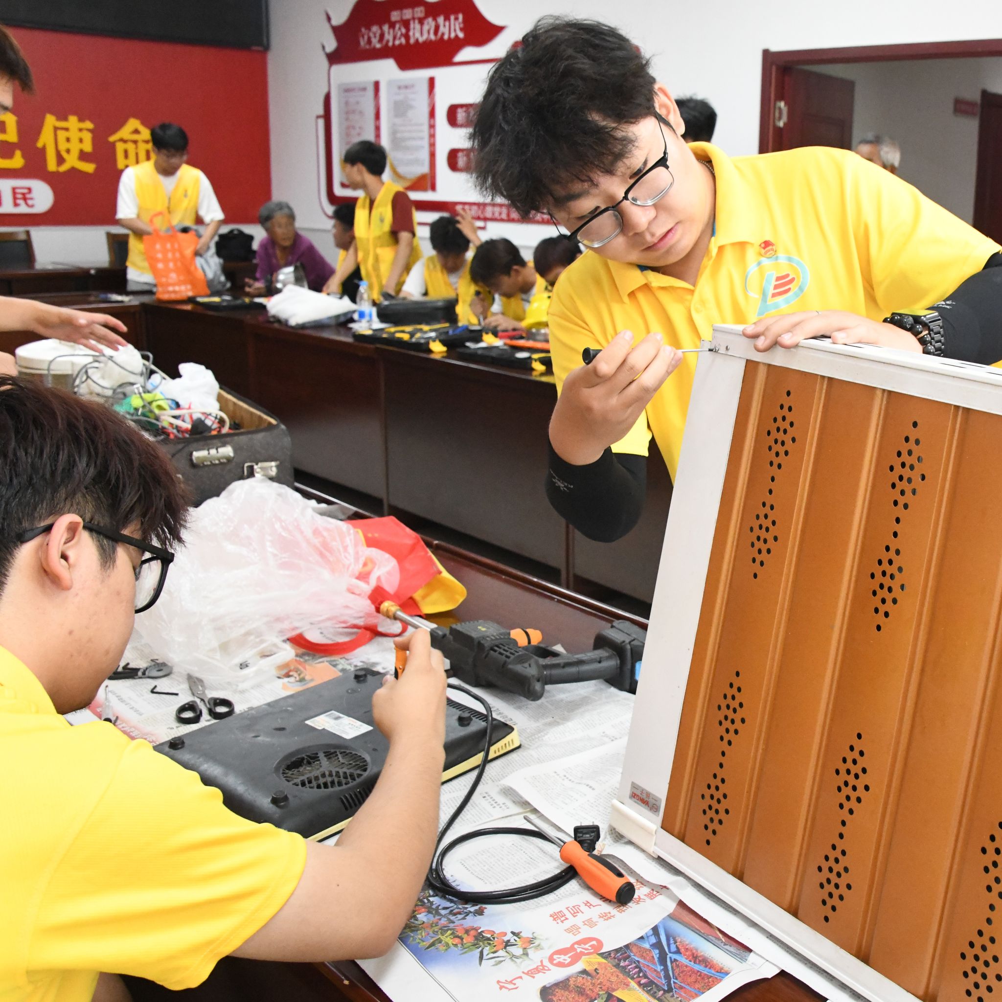 经过团队前期的精心策划与组织,大家乘车抵达海子乡、明沙淖乡、萨拉齐镇开展“三下乡”文明实践活动。在这里,促进团成员修理了形形色色的家电,例如:电热水壶,电磁炉,电锅,洗衣机等。