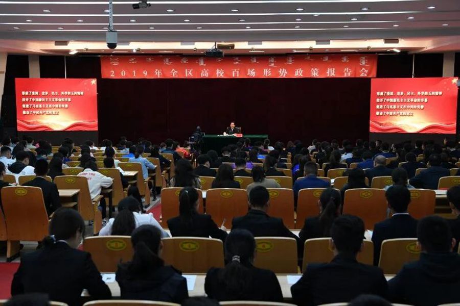 自治区领导林少春、白玉刚及有关部门负责同志参加活动。自治区高校师生代表700余人聆听报告。