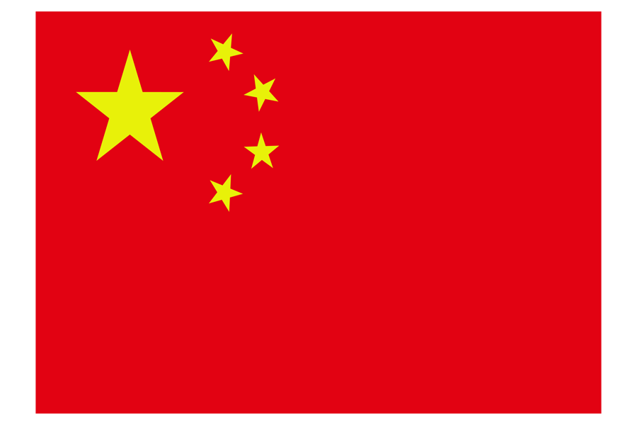 中华人民共和国国旗是五星红旗,旗面为红色,长宽比例为3:2。左上方缀黄色五角星五颗,四颗小星环拱在一颗大星的右面,并各有一个角尖正对大星的中心点。