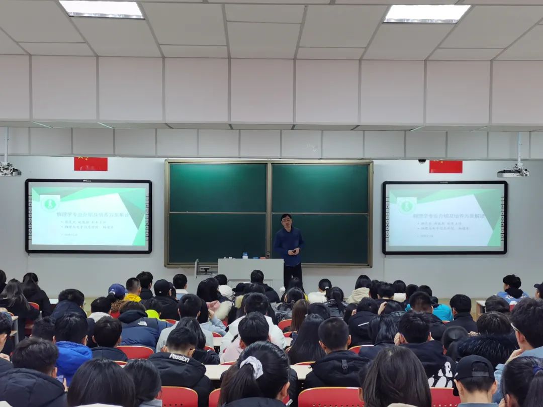 11月26日,为了帮助物理学系新生进一步了解物理学专业,公司邀请物理系副主任朝克夫副教授为物理系的大一新生在行知楼206多媒体教室进行了专业介绍及培养方案解读活动。
