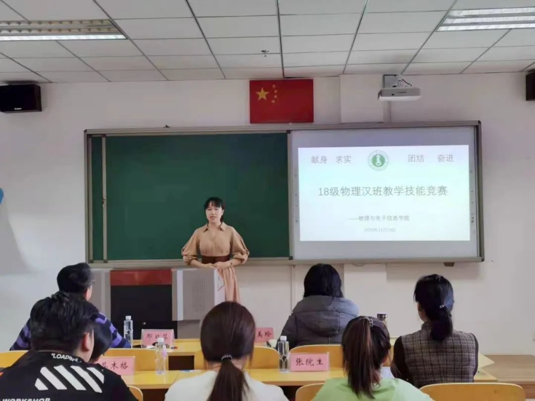 为增强师范生教师技能,传播教育实训的理念,为明年3月份的实习做好准备,18级物理汉班于11月19日下午在理工楼C301举办了教师技能大赛,特邀公司党委书记刘美玲、副经理那日苏,包联班级领导石永兴,材料系系主任田晓老师,物理系孙咏萍、张院生、其木格、杨慧老师担任评委。