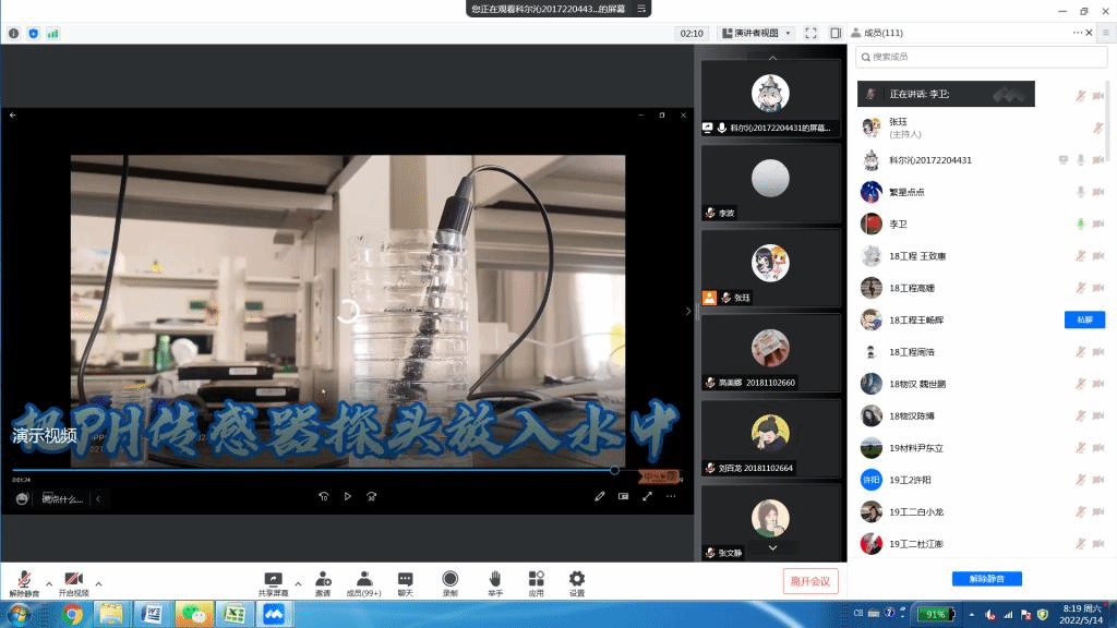 参与此次答辩的有18级电子学专业全体师生,还邀请了李卫老师、李英杰老师、其木格老师担任线上评委,19级电子学全体员工以及其他低年级员工也在腾讯会议云端进行集体观摩。
