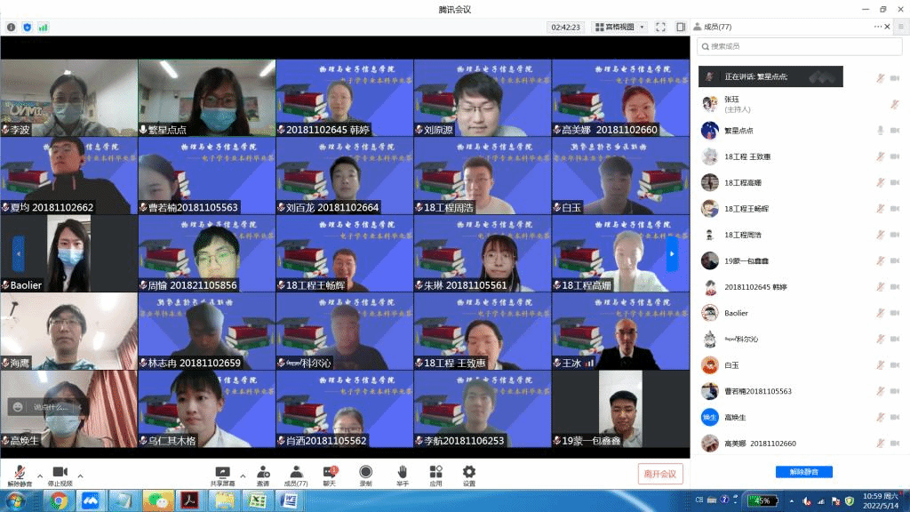 画面上一张张熟悉的脸庞,已经有了大人的模样。怀着别样的心情——或欣喜、或紧张,而眼中却多了一份勇敢与坚定,这是他们是对未来的憧憬与渴望。5月14日,电子学专业2022届毕业生迎来了他们的本科毕业论文“云答辩”。