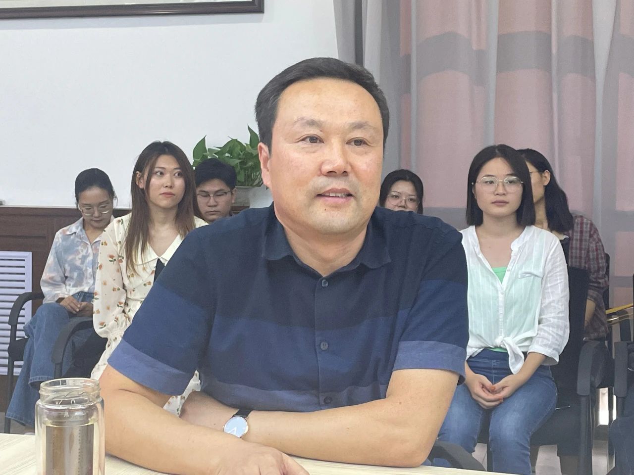 曹永军经理为同学们详细耐心地介绍了公司概况,对公司的办学特色、办学资源、就业方向进行了详尽的说明,并叮嘱同学们珍惜研究生时光,尽快适应研究生生活,致力于专业科研,不负研途。副书记兼副经理张伟从员工日常管理、实验室安全、创新创业以及党团管理等方面进行介绍。