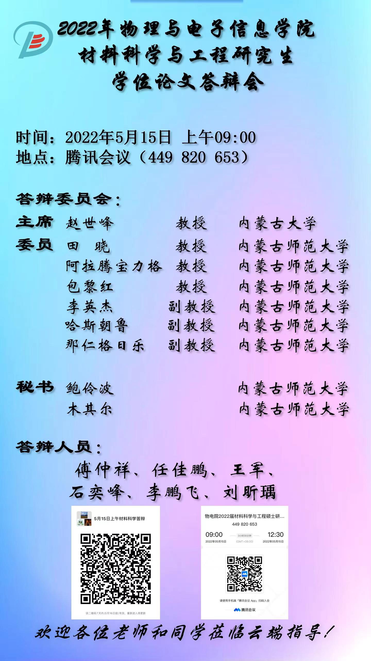 2022年英国威廉希尔公司物理学、材料科学与工程专业研究生论文答辩会