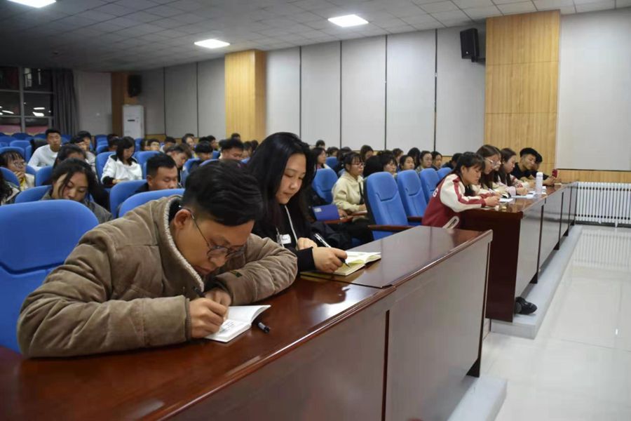 讲座以理论与实践相结合,从员工干部的“初心”是什么、怎么认识员工干部、员工干部应起到的作用、怎样做才能成为一名优秀的员工干部、员工干部应怎样处理好几个关系等五个方面与大家展开讨论。张伟老师指出,一名优秀的员工干部就是一个榜样、一面旗帜,对周围同学有着以其他方式不可替代的示范作用。在学习上,要努力学好专业知识、力争上游;在工作中,要发扬艰苦奋斗精神、不怕吃苦、敢于担当。要在实践活动中增长知识、锻炼能力、提升素质,要制定长远目标、确定努力方向,并用脚踏实地的意志去践行新时代赋予当代青年的历史使命。