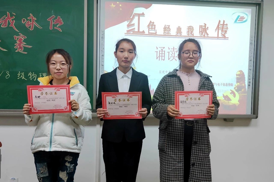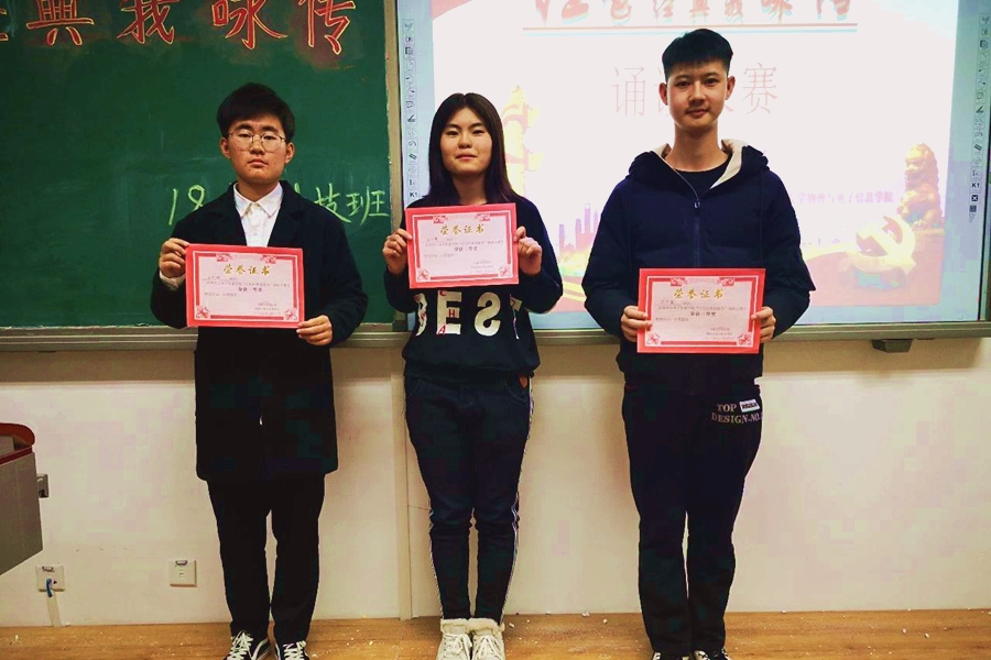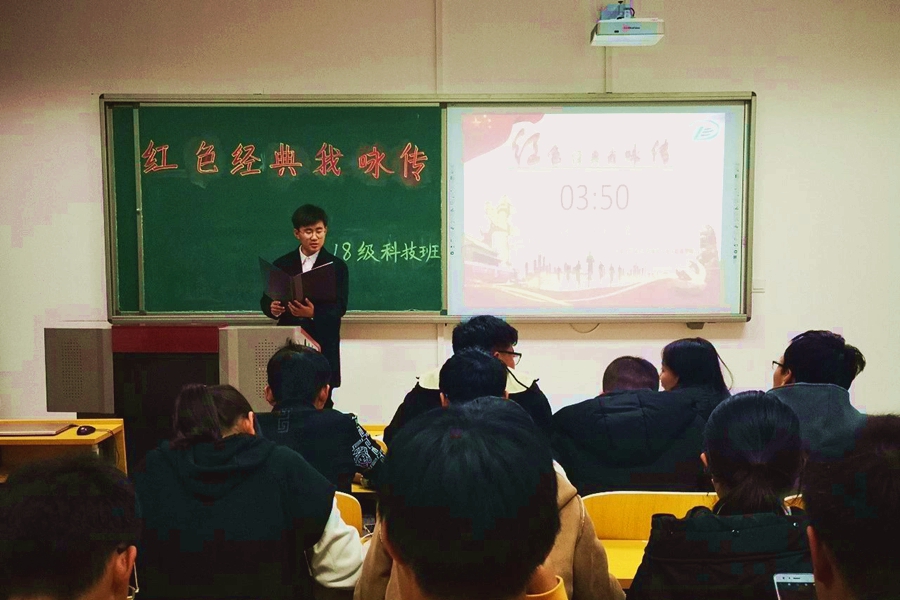 本网讯 为带领同学们学习革命精神,弘扬红色文化,2018年11月13日晚,公司17、18级各团支部在理工楼举办了以“红色经典我咏传”为主题的诵读比赛。公司17级物理学汉班班主任张天臣、18级物理学汉班班主任其木格、辅导员宋鑫伟受邀出席并担任评委。