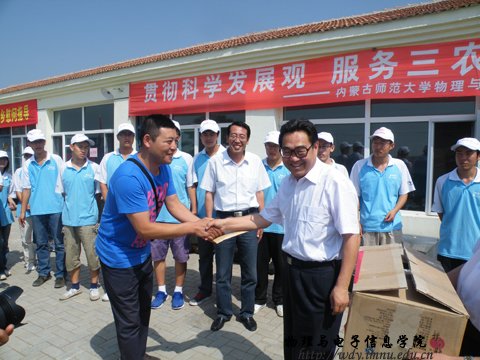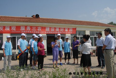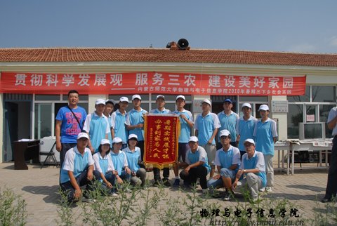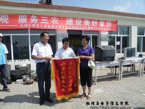 公司以“贯彻科学发展观,服务三农,建设美好家园”为主题的“三下乡”社会实践从7月11日开始,先后到集宁区白海子镇、马莲渠乡开展活动。为当地村民普及用电常识,宣讲家电维护和保养知识,并为村民义务维修家电、放电影等。 7月14号上午,志愿者们看望了白海子镇老党员乔吉贵和低保户杜枝梅两家,并带去牛奶和西瓜等物品。活动期间,服务队共收到损坏的电视机、电冰箱、洗衣机、电饭煲、鼓风机等家电共300余件,修好230多件。白海子镇村民孙大爷竖起大拇指夸赞志愿者队员们说:“娃娃们真厉害。”20日上午,白海子镇党委书记代表全体村民为服务队送来写着“暑期实践展才能、办事到家为人民”锦旗,马莲渠乡三成局村民高大爷也送来感谢信感谢志愿者们的周到服务。