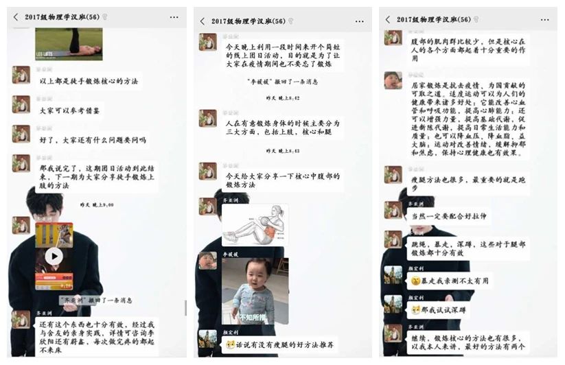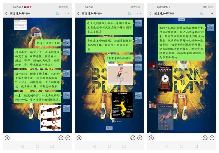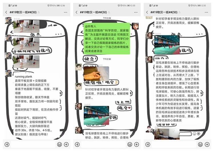 活动期间,同学们利用抖音等短视频、图文解说、交流讨论等方式,以居家锻炼的图文记录和音视频素材、每日锻炼打卡、线上运动会、团队游戏等多种载体,组织开展团日活动,同学们均反响热烈。