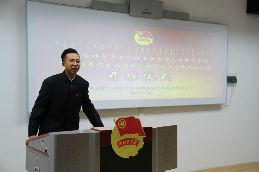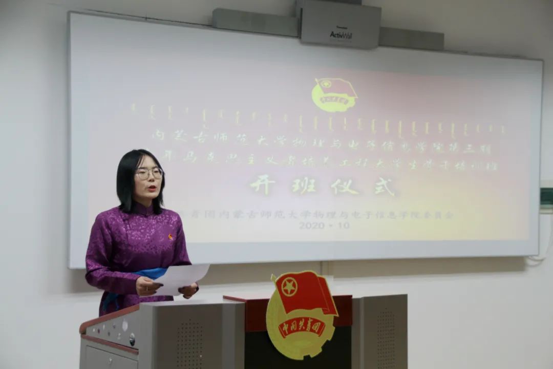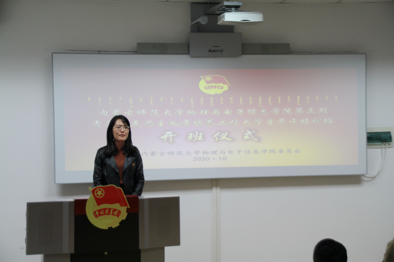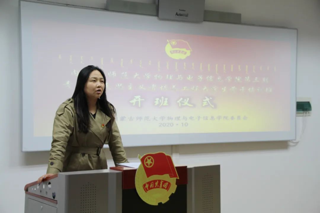 开班仪式上,宝力尔老师介绍了举办青马班的意义、本期青马班的培训纪律及日程。王乐老师就员工干部应具备的品质提出了具体要求,嘱咐大家作为员工的表率应乐于奉献、坚韧不拔。宋鑫伟老师讲述了自己对青马班的认识和理解,分享了曾经作为青马班学员的学习经历。培训学员代表海兰作了表态发言,她表示,青马班是同学们锻炼品格意志、提高工作水平和思想觉悟的大课堂,作为青马班的一员,在今后的学习工作中会更加努力,严于律己,发挥员工干部的模范作用。