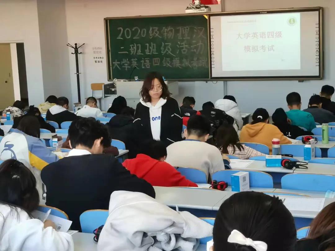 本次四级模拟考试的题型严格按照全国大学英语四级的大纲标准。考试过程中,同学们认真审题,严谨作答,20级物理汉二班班主任付佳琦老师全程巡考,认真履责。