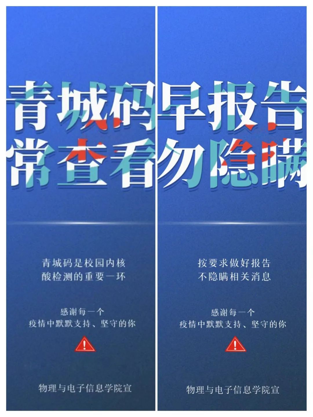 健康日报、体温晨午报是大家每日必须完成的一项工作,请大家按照要求准时上报,如有特殊情况早报备,不隐瞒。做完核酸检测后,及时查看青城码结果,有问题及时上报。
