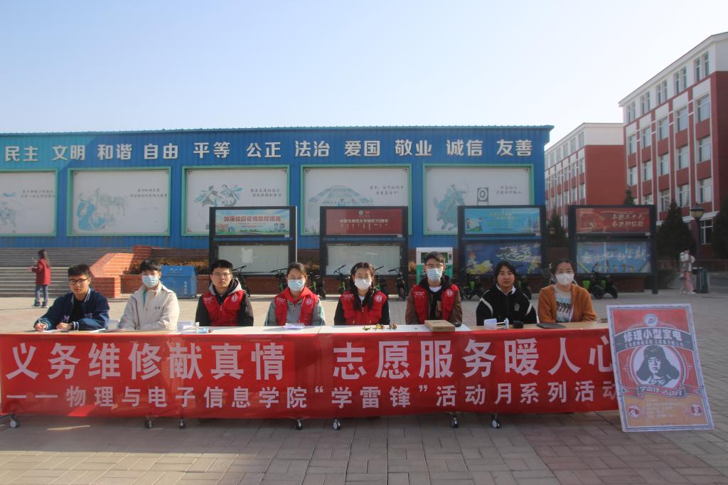 为进一步贯彻习近平总书记针对深入开展学雷锋活动作出的重要指示,将雷锋精神代代传承,推动公司志愿服务工作走深、走心、走实,3月5日,公司团总支在盛乐校区群鸿餐厅西门开展“义务维修献真情 志愿服务暖人心”志愿服务活动。