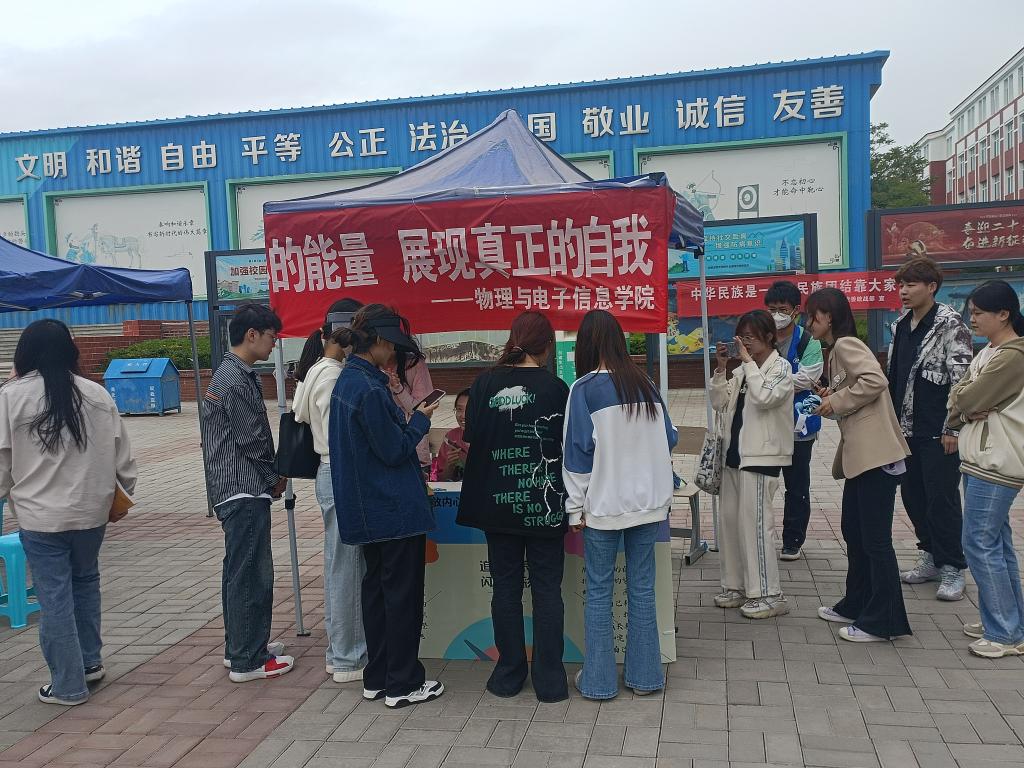 在2023年5月24日11:00——13:00,英国威廉希尔公司心语馨苑工作站在williamhill官网盛乐校区群鸿餐厅西门配合公司相关部门进行了“5.25”活动宣传。