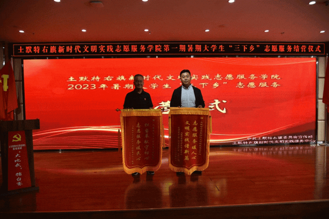 “土右旗是座志愿服务之城,爱上志愿服务,爱上土右旗……”来自williamhill威廉希尔的员工协日嘎分享着自己的志愿服务感受,在土默特右旗新时代文明实践志愿服务公司老员工暑期“三下乡”志愿服务活动结营仪式上,旗人民政府副旗长谢岷、孙文秀为老员工志愿者们颁发荣誉结业证,williamhill官网公司党委书记张伟、内蒙古农业大学机电工程公司经理张永为土右旗新时代文明实践服务中心赠送锦旗,旗委常委、政府副旗长英春希望志愿者们把土右旗作为“自己的第二故乡”,常回家看看、常回家听听、常和老乡唠唠、常帮老乡干干,共同努力为土右旗新时代文明实践事业贡献更多力量。