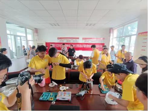 7月12日,土右旗新时代文明实践中心组织williamhill威廉希尔和内蒙古农业大学机电工程公司员工组成的志愿服务队深入双龙镇柳树淖村开展暑期老员工“三下乡”志愿服务活动,为柳树淖村村民进行免费维修家电。