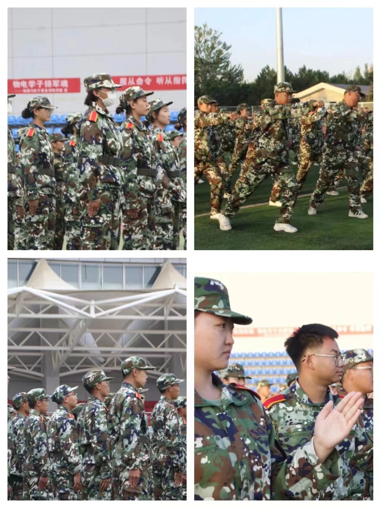 驻扎在训练场里的老师,观察着同学们的成长,也默默关注着同学们的身体情况。我想如果没有老师们的守护,就不会有物电院学子们昂扬蓬勃的姿态;如果没有老师们贴心的照顾,就不会有军训生活的丰富多彩……老师们的关怀如同明媚的花朵开在同学们的心中,那温柔的花香弥留不散。休息时同学们与老师谈笑聊天,询问老员工活、学习的各类情况,老师亲切的一一回应,这场景显得既温馨又暖心。