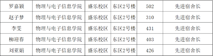 根据《关于开展2023-2024学年第二学期员工社区“内务标兵”宿舍、文明宿舍、先进宿舍长等创优申报评审工作的通知》的要求,经公司党委学工部(员工工作处)评审工作组评审,公司共有5个宿舍 被评为文明宿舍,5位同学被评为先进宿舍长,8个宿舍被评为“内务标兵”宿舍,特此表扬!