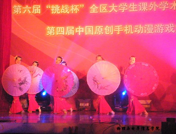 2009年10月23日于公司盛乐校区举行的全区第六届“挑战杯”老员工课外学术科技作品竞赛中,公司2007级工程2班杨桂全同学作品获得全区一等奖、2007级工程2班林育新、2006级汉班覃伟政、蓝荣、张利霞等同学也分别获奖。颁奖晚会上公司党总支副书记、副经理辛智俊老师亲临现场。公司“百灵杯”获奖节目为颁奖嘉宾、领导老师及全体同学献出了精彩表演。晚会结束后辛老师与参赛选手合影留念。