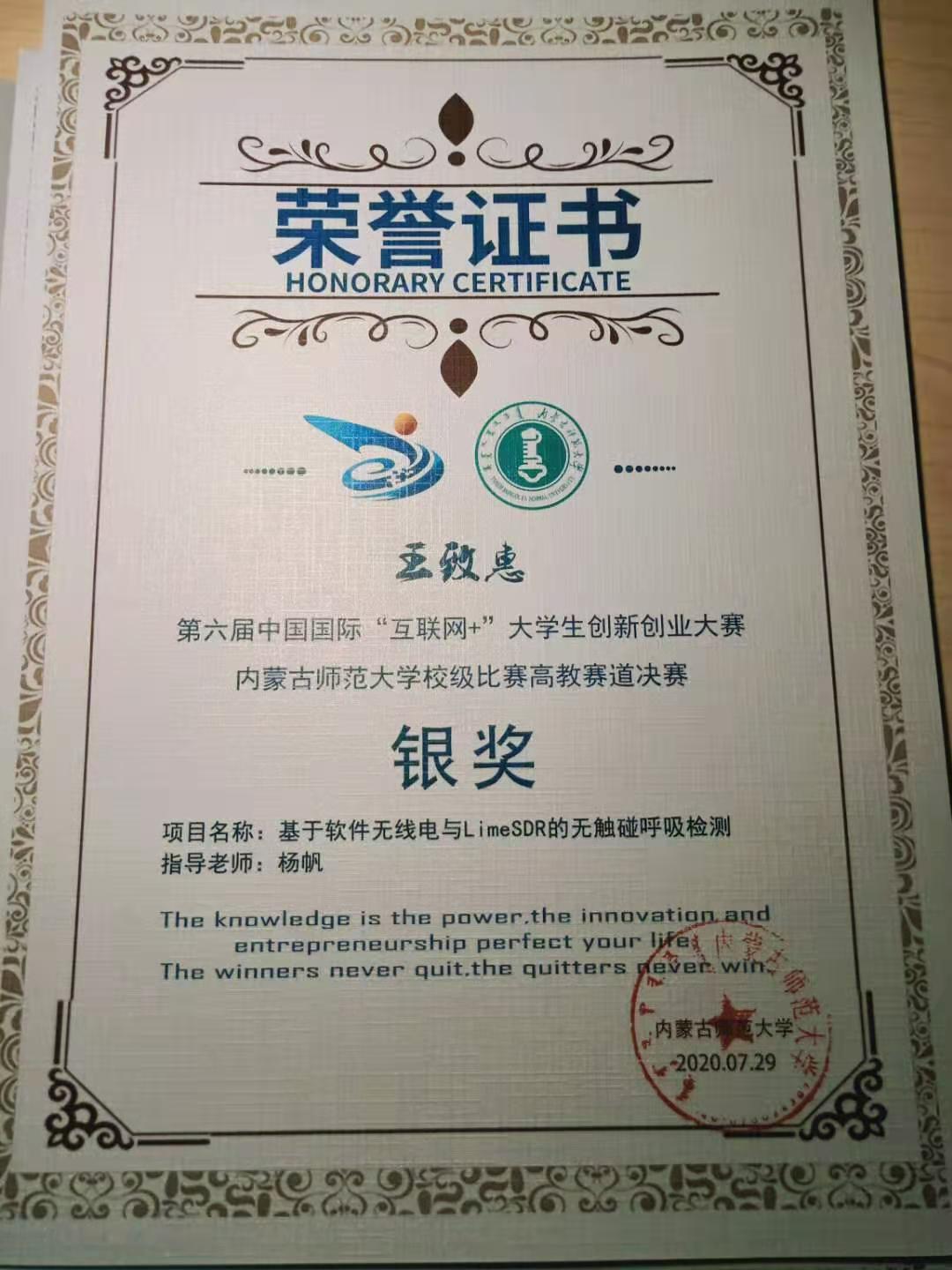 银奖 《基于软件无线电与LimeSDR的无触碰呼吸检测》