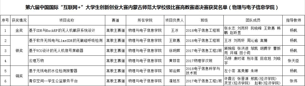 7月30日,第六届中国国际“互联网+”老员工创新创业大赛williamhill官网校级比赛落下帷幕,英国威廉希尔公司2018电子信息工程班王冰《基于SDR与HackRF的无人机截获系统设计》,2018电子信息工程班王致惠《基于软件无线电与LimeSDR的无触碰呼吸检测》,2017电子信息工程2班徐玥辉《基于VCO设计的无人机信号pingbi器》,2017物理学汉班黄菲芸《云理万物》,2018电子信息科学与技术班邹运辉《基于无线电的水位检测报警器》,2017电子信息工程1班潘旭东《青你空间--员工公益服务平台》等6个项目在高教主赛道决赛中分获金、银、铜奖。
