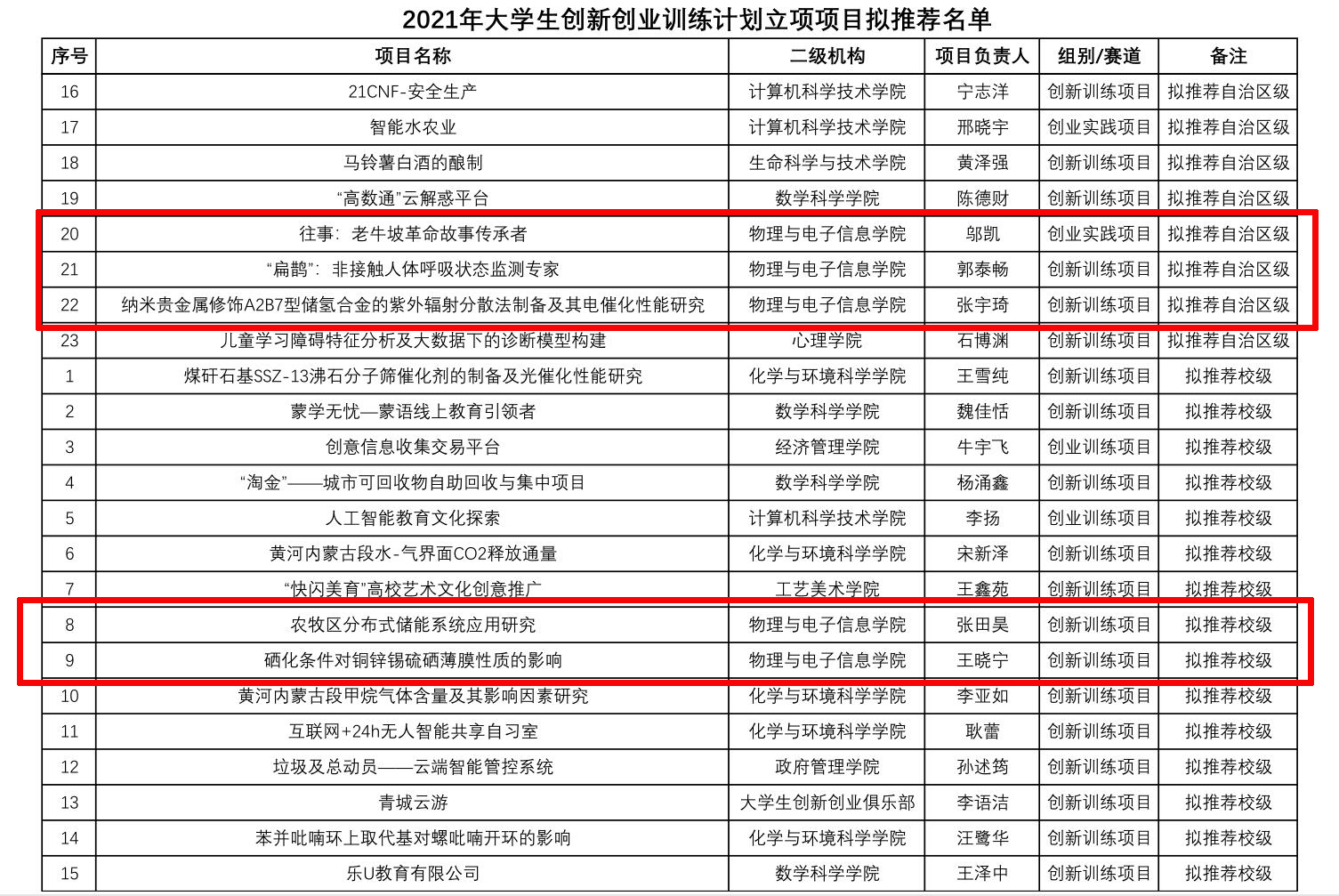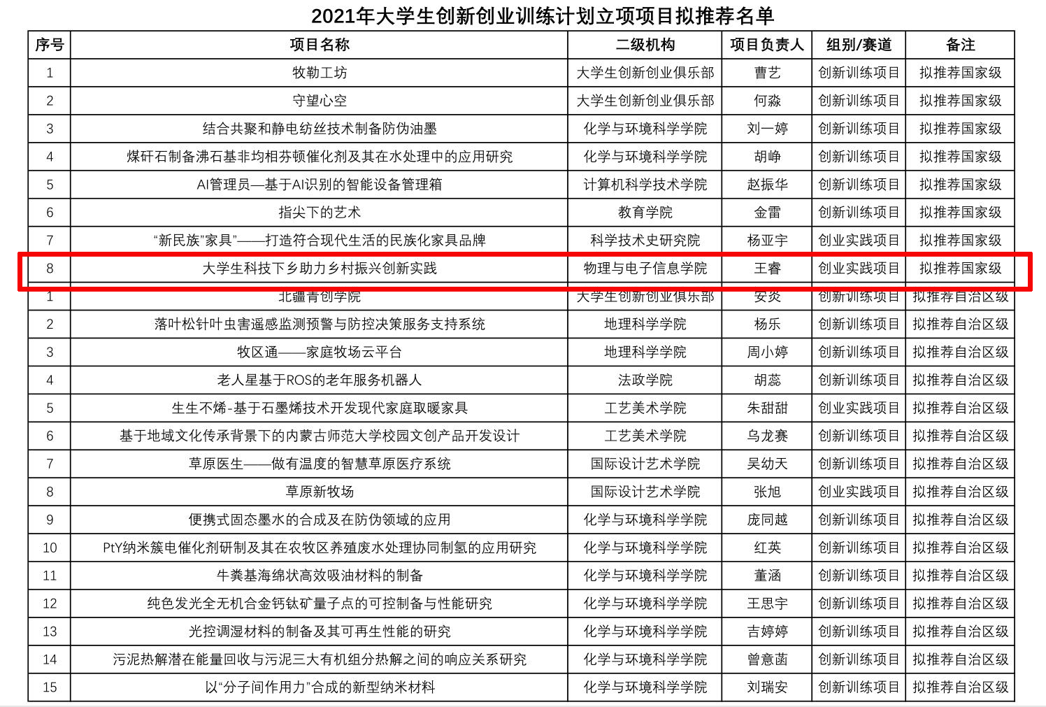 1.《老员工科技下乡助力乡村振兴创新实践》 英国威廉希尔公司王睿 创业实践项目 国家级 第一指导教师:张伟;